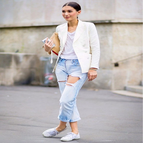 It's no secret that Denim is one of my favorite apparel, and everyone who loves fashion and style, male or female, should own at least one pair of distress denim. If you opt for designer denim, sometimes they might be available for a better price, and they often times fit better, I mean they are more stretchy(which l love!). Distressed denim can be more likable because they are little more cropped than our typical jean, which is preferred when wearing flats.